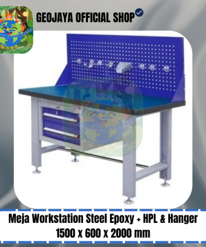Meja Workstation Steel Epoxy + HPL & Hanger – 1500 x 600 x 2000 mm