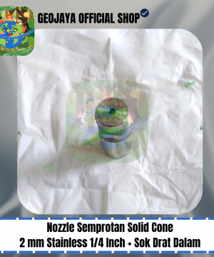Beranda » LAB EQUIPMENT » Nozzle Semprotan Solid Cone 2 mm Stainless 1/4 Inch + Sok Drat Dalam